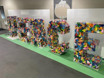 2023年5月19日開催のG7広島サミットの国際メディアセンター広報展示に、日本エアーテック(株)様、ACBiode様と共同で、CO2を直接空気中から吸収できるDAC機能搭載型ハイブリッド空気清浄機と、レブセルのマスコットキャラクター・ホッキョクグマの「ZEROくまくん」のぬいぐるみを、レコガラス(*1・リサイクルガラス)で作成した雪原(*2・結晶化ガラス)の上に載せた作品として広報展示させて頂きました。日本を代表する技術の一つとしてG7広島サミット(主要7カ国首脳会議)に我々の技術が展示されたことはこれからの開発にとても大きな力になりました。