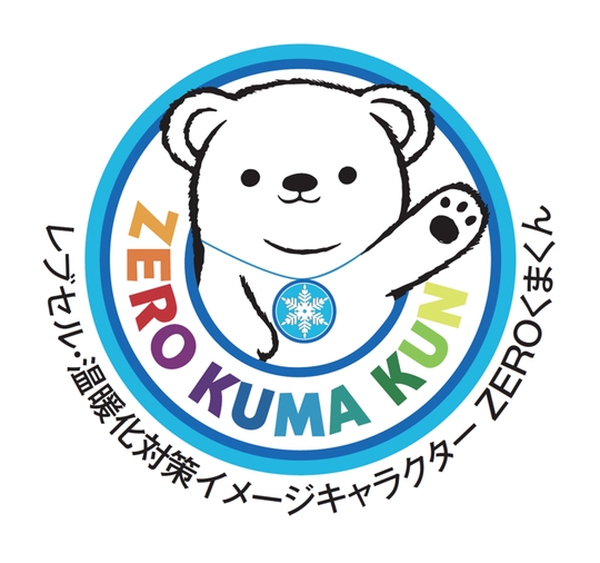 温暖化で氷が溶け、生息地が狭まっているホッキョクグマをモチーフにしたレブセルの温暖化対策イメージキャラクターの「ZEROくまくん」2050年zero emissionの達成に向けて一緒に頑張ります!